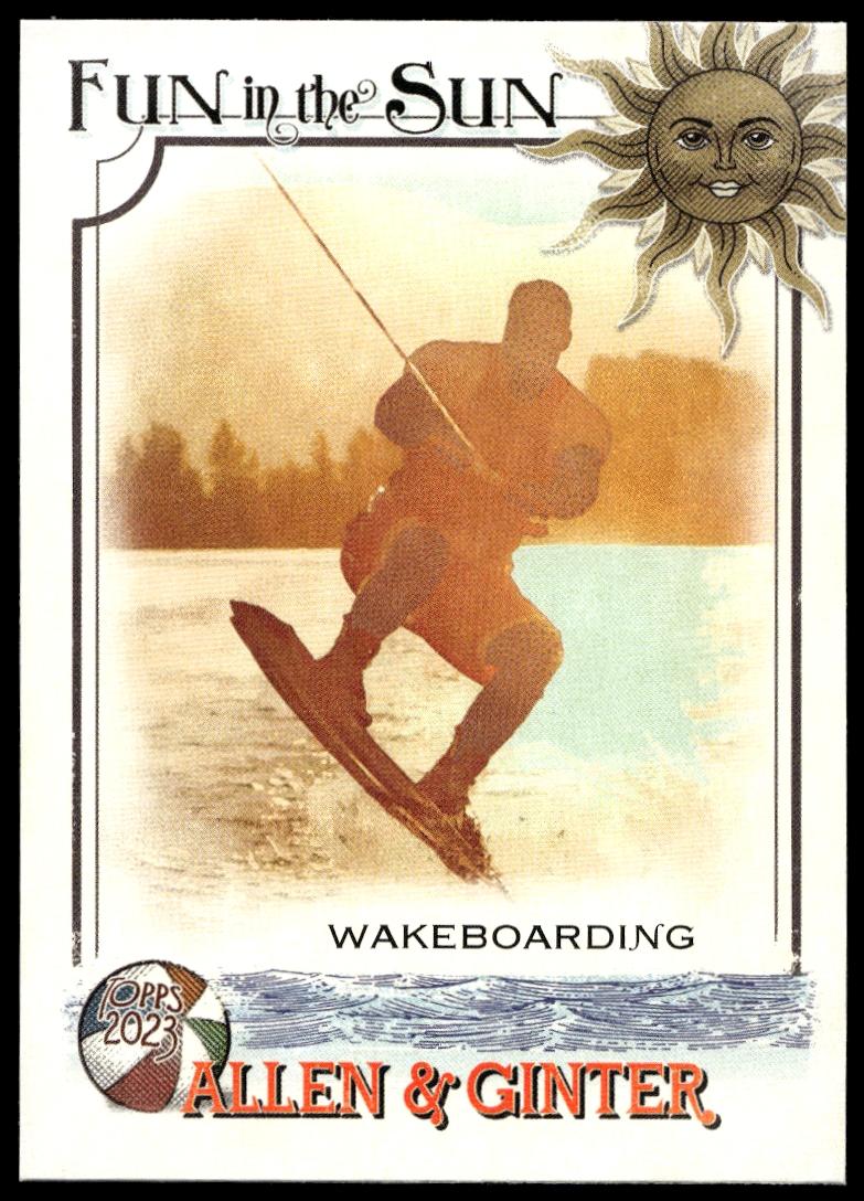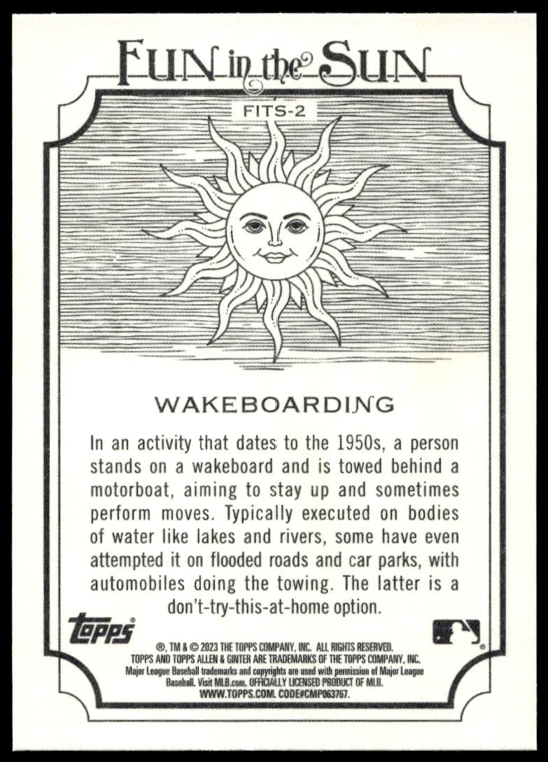 This Baseball card, from 2023 is part of the Topps Allen & Ginter card set. Wakeboarding is featured and has a card number of FITS-2.