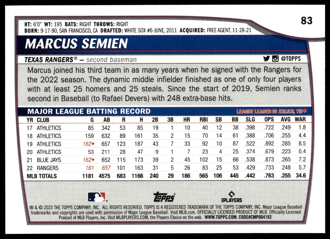 2023 Topps Big League Marcus Semien #83