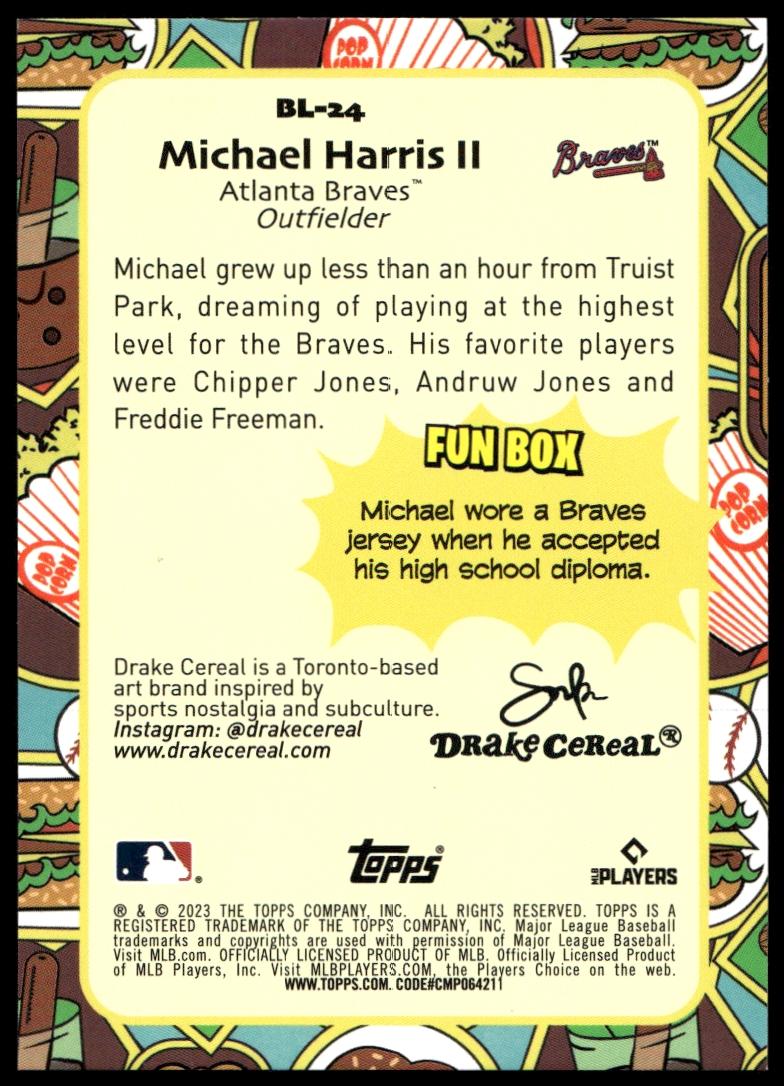 This BaseballΒ card, from 2023 is part of the Topps Big LeagueΒ card set. Michael Harris II is featured and has a card number of BL-24.