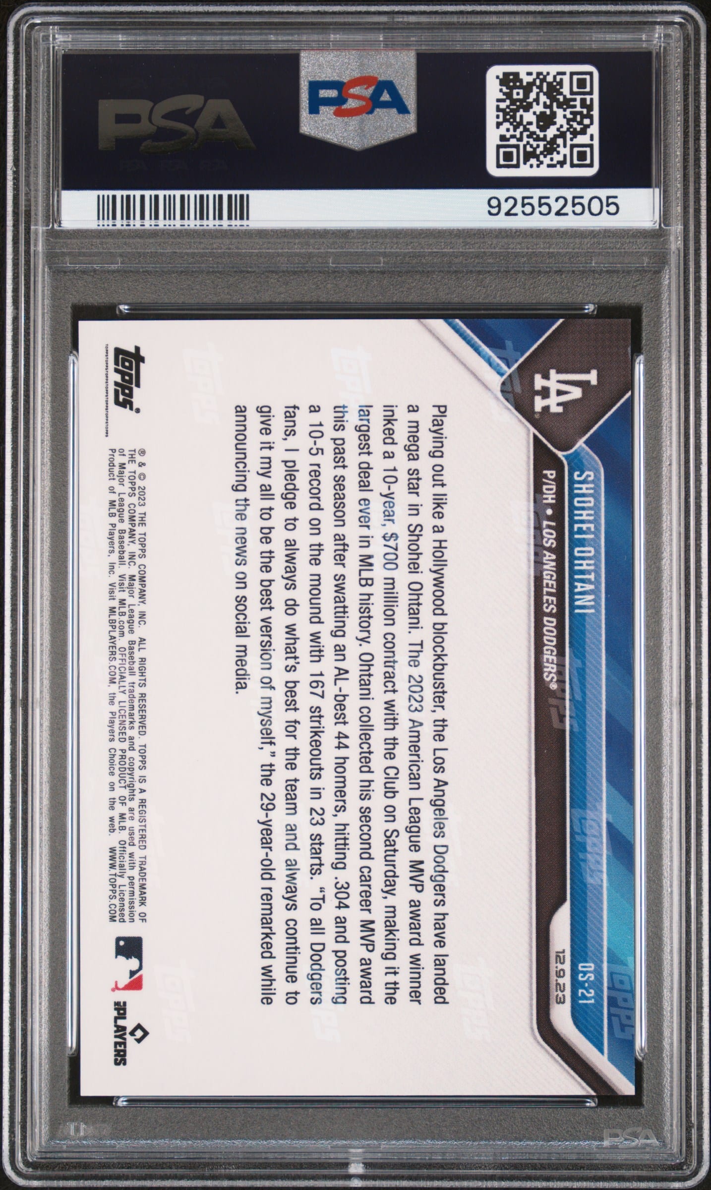 2023 Topps Now Shohei Ohtani Offseason #OS-21 in PSA 10 condition, perfect for collectors and fans seeking premium memorabilia.