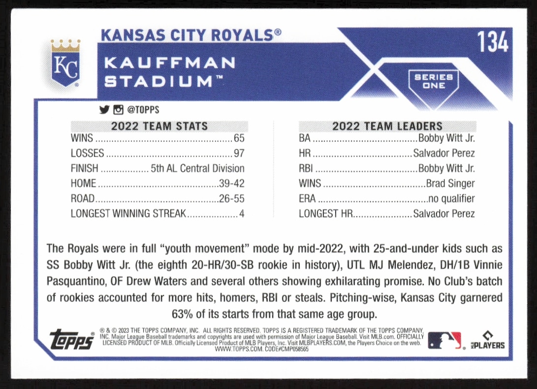 2023 Topps Series 1 Kansas City Royals Team Card #134
