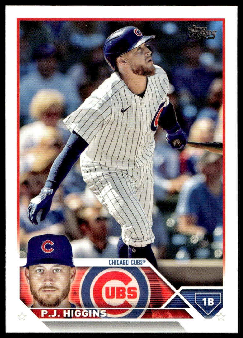 This Baseball card, from 2023 is part of the Topps Series 1 card set. P.J. Higgins is featured and has a card number of 338.