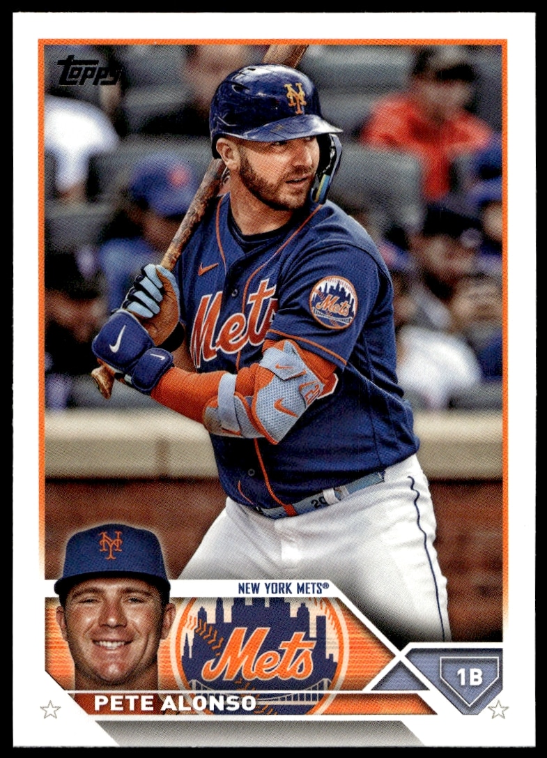 This Baseball card, from 2023 is part of the Topps Series 1 card set. Pete Alonso is featured and has a card number of 20.