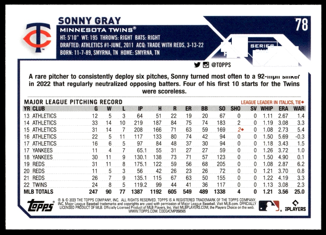 Home Β» 2023 Topps Series 1 Sonny Gray #78
