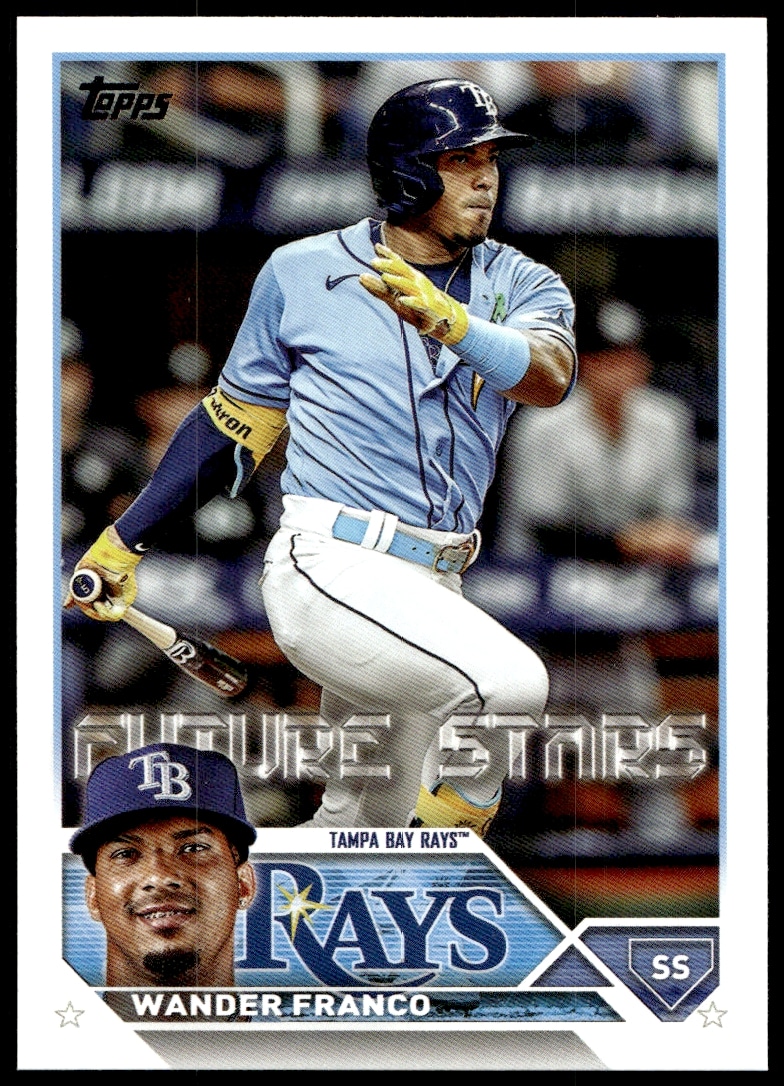 This Baseball card, from 2023 is part of the Topps Series 1 card set. Wander Franco is featured and has a card number of 215.