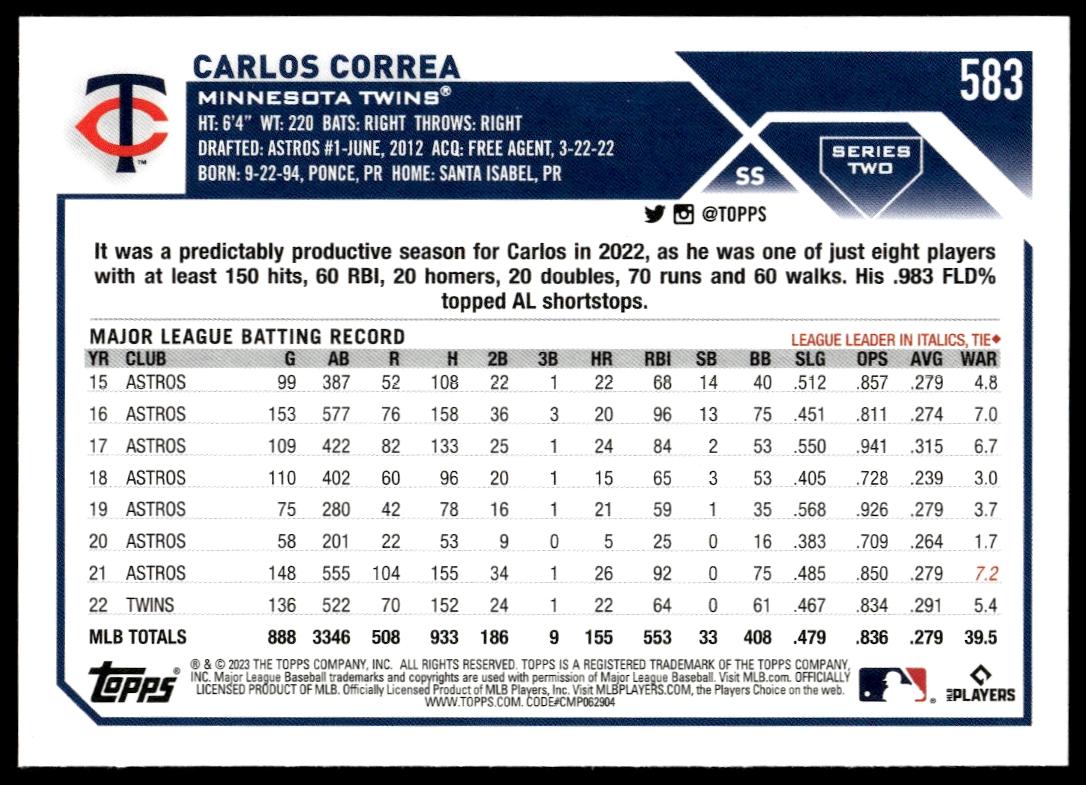 Home Β» 2023 Topps Series 2 Carlos Correa #583