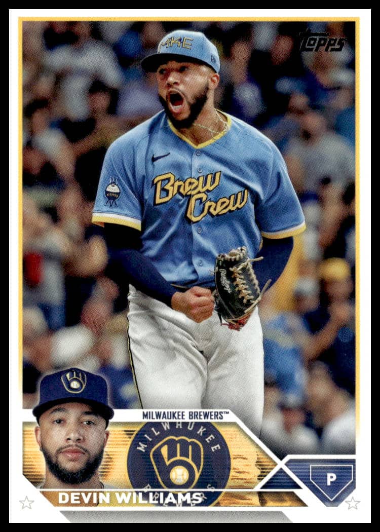 This Baseball card, from 2023 is part of the Topps Update card set. Devin Williams is featured and has a card number of US91.