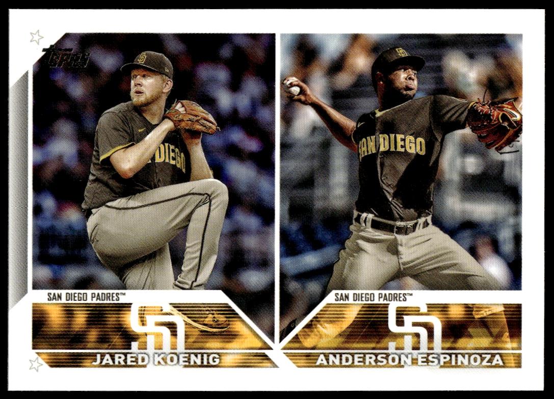 This Baseball card, from 2023 is part of the Topps Update card set. Jared Koenig / Anderson Espinoza is featured and has a card number of US265.