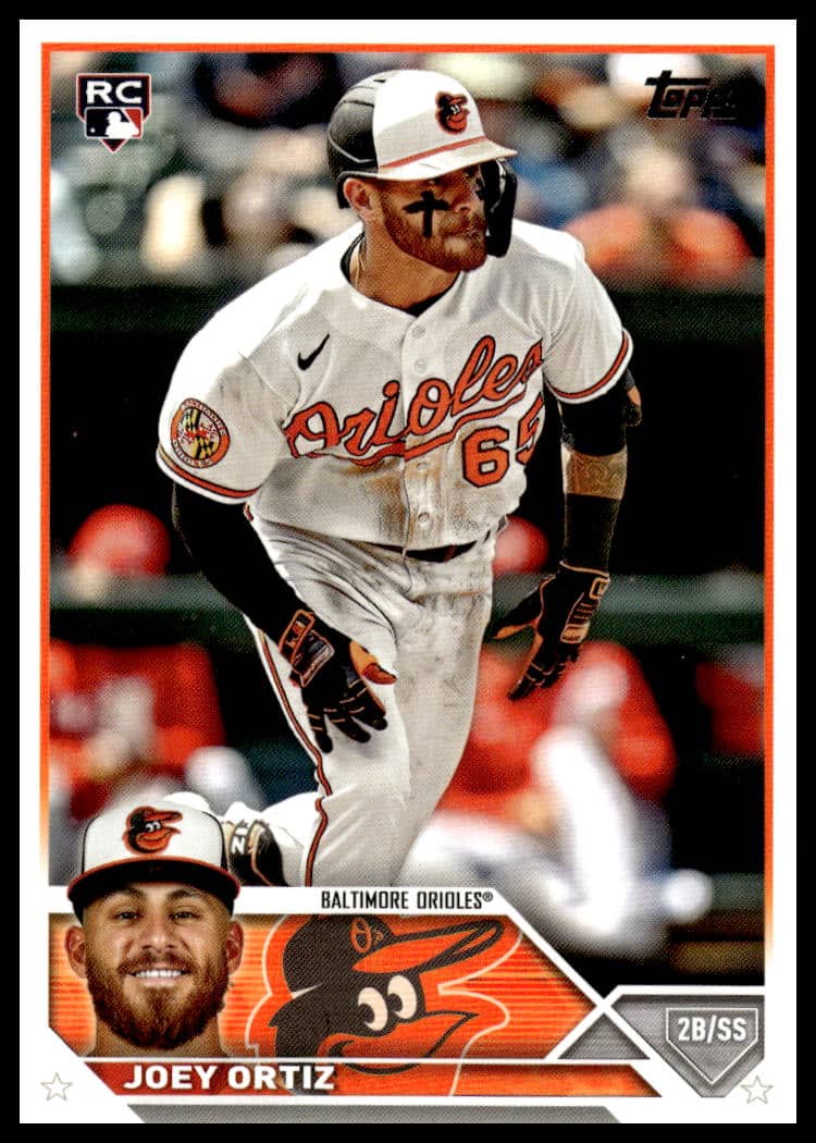 This Baseball card, from 2023 is part of the Topps Update card set. Joey Ortiz is featured and has a card number of USC216.