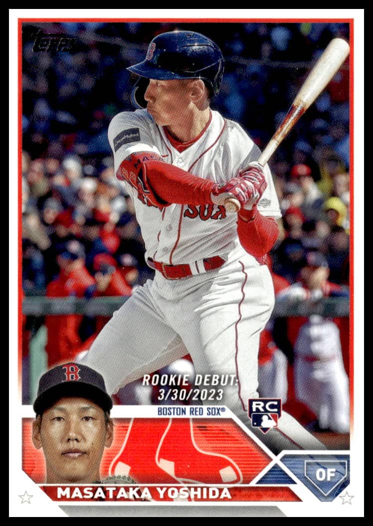 This Baseball card, from 2023 is part of the Topps Update card set. Masataka Yoshida is featured and has a card number of US5.