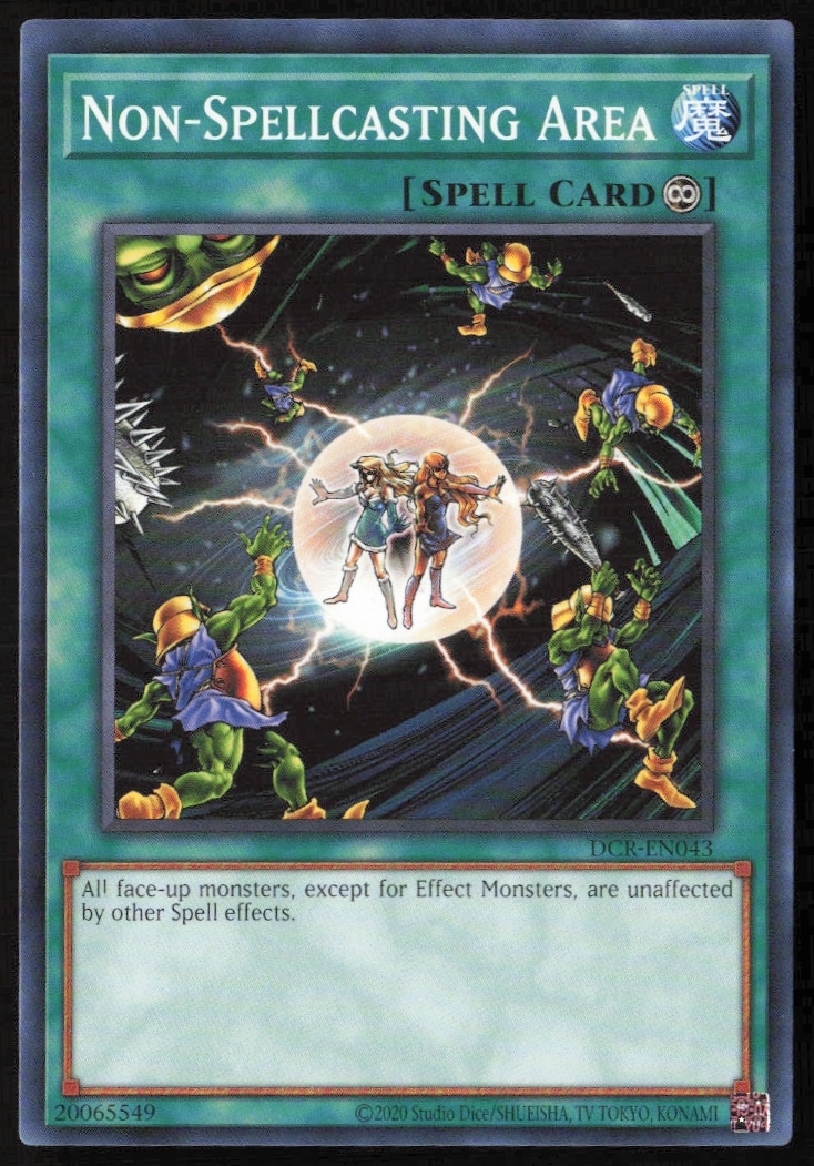 This card, from is part of the Yu-Gi-Oh! Dark Crisis (25th Anniversary Edition) card set. Non-Spellcasting Area is featured and has a card number of DCR-EN043.