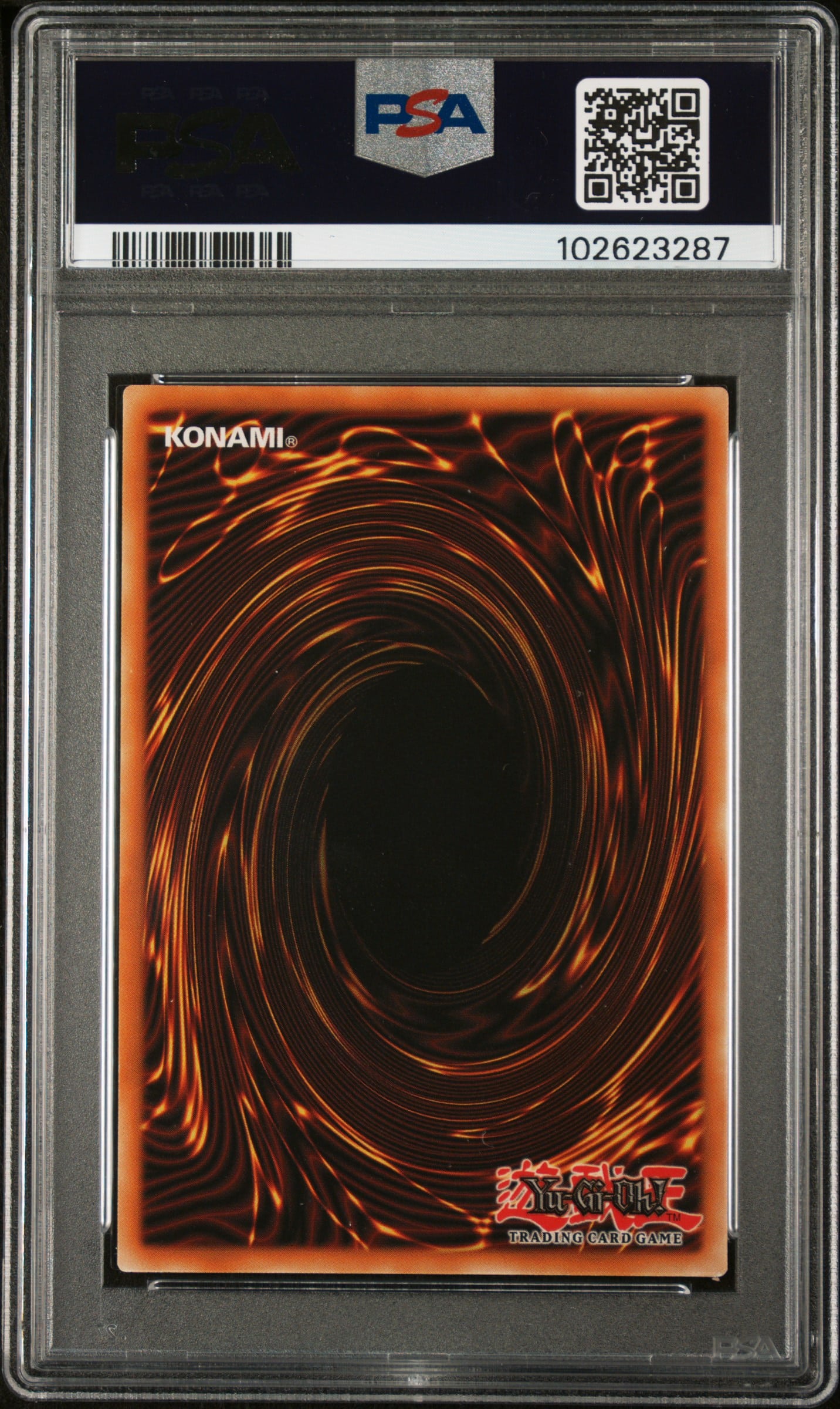 This Yu-Gi-Oh! card, from 2023 is part of the Yu-Gi-Oh! Rarity Collection (25th Anniversary Edition) card set. Elder Entity N’Tss is featured and has a card number of EN026. It is graded by PSA and has a numeric grade of 10.
