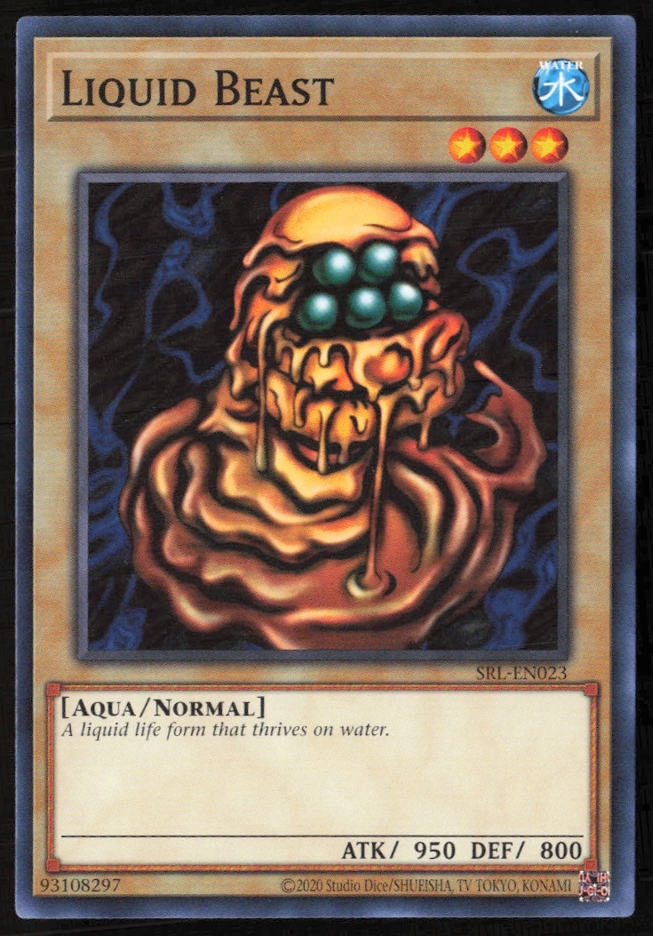 This Yu-Gi-Oh! card, from 2023 is part of the Yu-Gi-Oh! Spell Ruler (25th Anniversary Edition) card set. Liquid Beast is featured and has a card number of SRL-EN023.