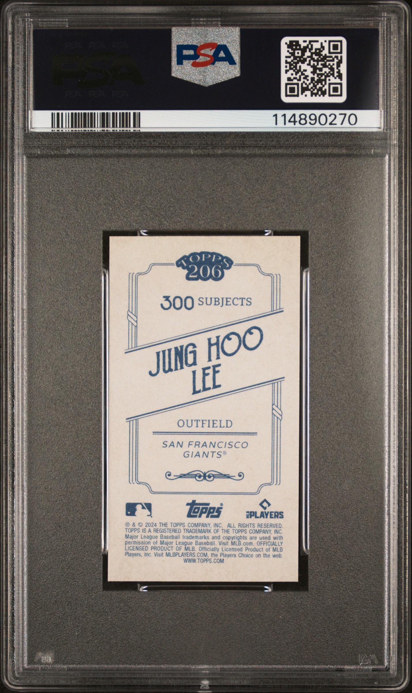 This Baseball card, from 2024 is part of the Topps 206 card set. Jung Hoo Lee is featured. It is graded by PSA and has a numeric grade of 9.