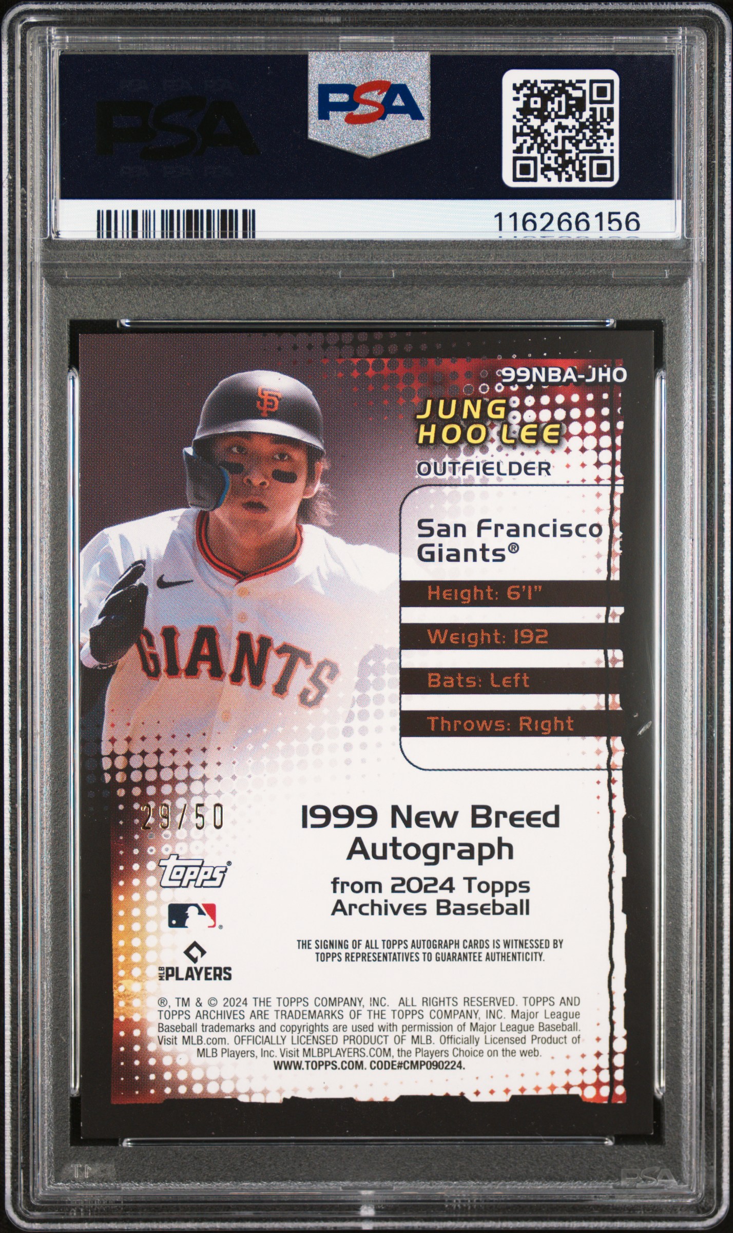 2024 Topps Archives Jung Hoo Lee 1999 New Breed Autographs Gold Foilboard #99NBA-JHO (/50) (Auto) (PSA 6)