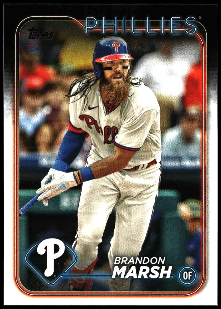 This BaseballΒ card, from 2024 is part of the Topps Series 1Β card set. Brandon Marsh is featured and has a card number of 71.