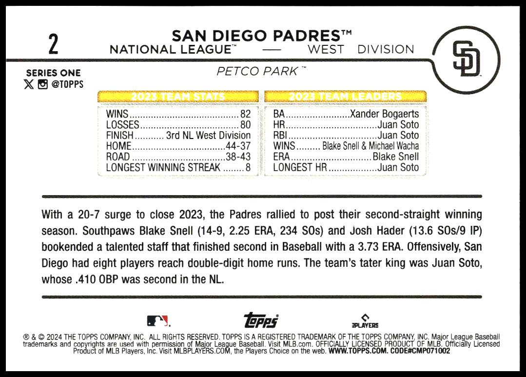 2024 Topps Series 1 San Diego Padres #2