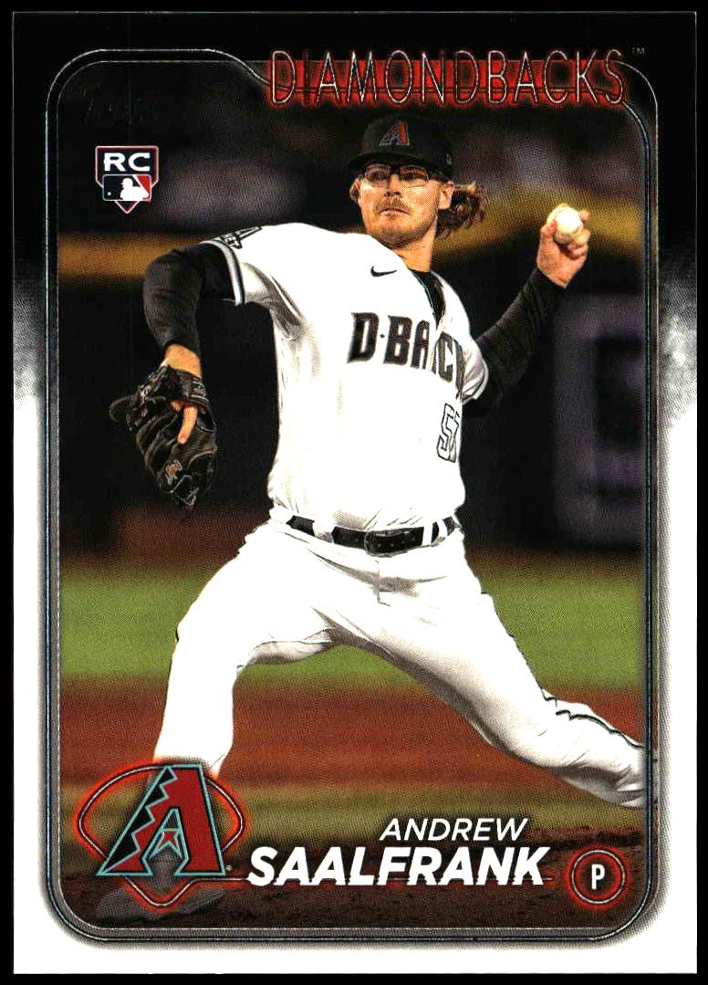 This Baseball card, from 2024 is part of the Topps Series 2 card set. Andrew Saalfrank is featured and has a card number of 406.