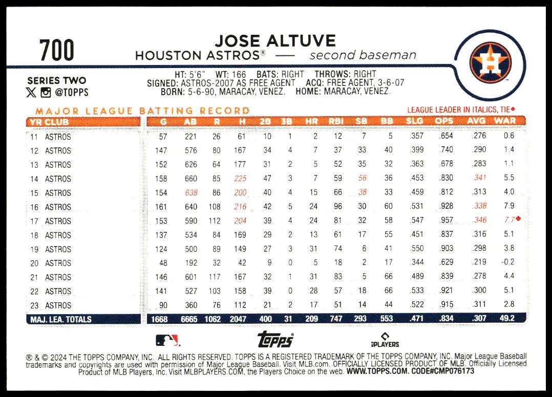 Home Β» 2024 Topps Series 2 Jose Altuve #700