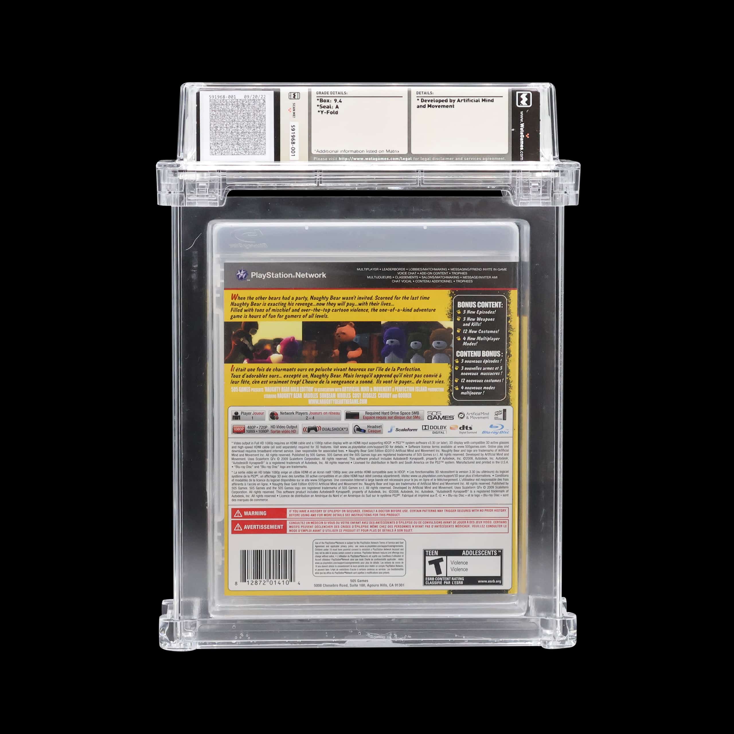 Naughty Bear (Gold Edition) for PS3 is a treasure for collectors like me. WATA 9.4 sealed with an A, its captivating graphics and immersive gameplay shine. Unleash your inner mischief-maker in this endless, chaotic fun. A must-have gold standard edition!