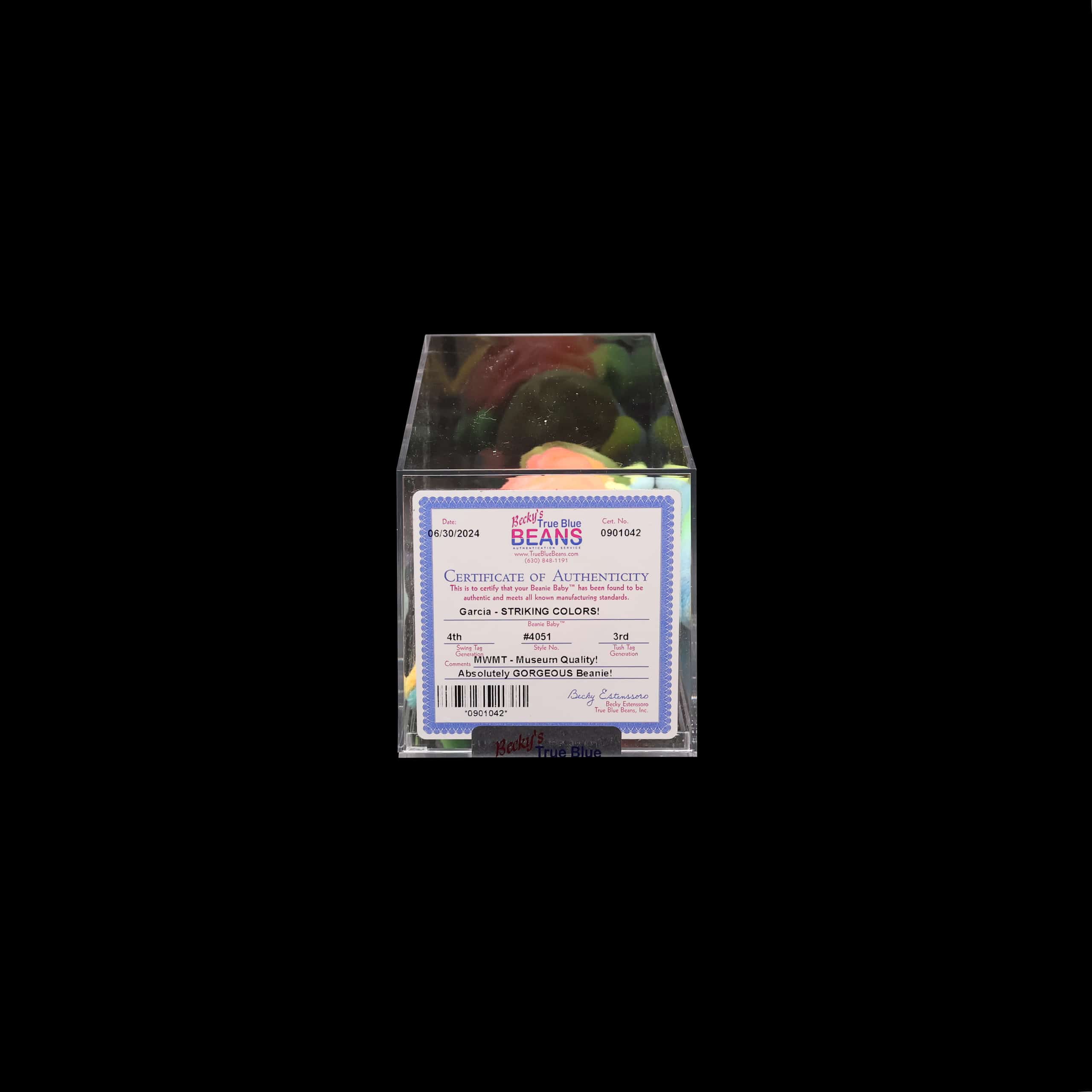 Encased in a protective display case, this piece is preserved in MWMT (Mint With Mint Tags) Museum Quality condition. The accompanying Certificate of Authenticity highlights its “Absolutely GORGEOUS Beanie” rating, underscoring its exceptional craftsmanship. Add this striking collectible to your lineup and enjoy the timeless charm of “Garcia.”