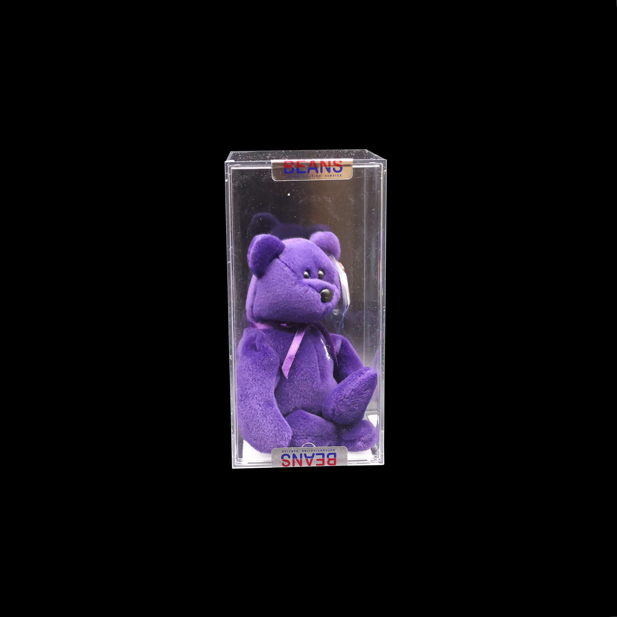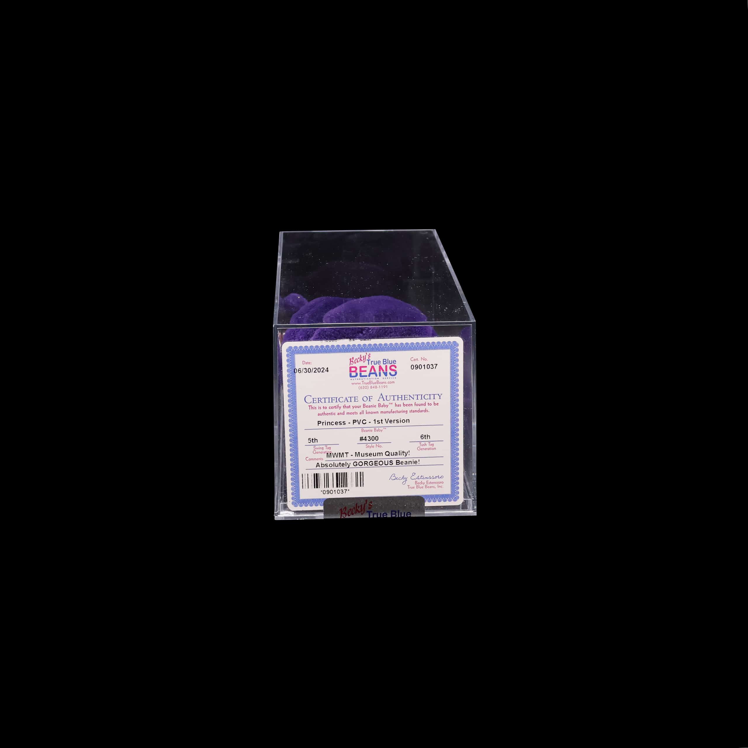 Honor an enduring legacy with this authentic Ty Beanie Baby, “Princess – PVC 1st Version.” Dedicated to Princess Diana, this stunning bear features a regal purple design with a white rose emblem and elegant satin ribbon, symbolizing grace and remembrance. Encased in a protective display box, this rare first version is preserved in MWMT (Mint With Mint Tags) Museum Quality, making it a highly sought-after collector’s piece.